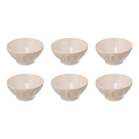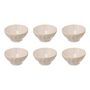 Informations Techniques : Dimensions : D. 15 x H. 7,3 cm Matière : Grès Spécificités : Élégant & Utile Lot de 6 bols design Forme ronde Chaque produit est unique, des variations de couleurs peuvent survenir d'un produit à l'autre Contenance : 56 cl Poids : 0,44 kg (à l'unité) Couleur : Bei