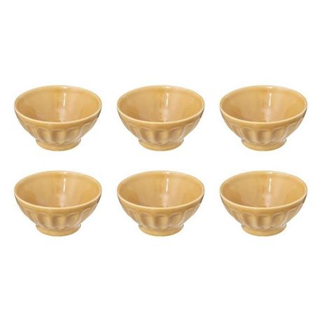Informations Techniques : Dimensions : D. 15 x H. 7,3 cm Matière : Grès Spécificités : Élégant & Utile Lot de 6 bols design Forme ronde Chaque produit est unique, des variations de couleurs peuvent survenir d'un produit à l'autre Contenance : 56 cl Poids : 0,44 kg (à l'unité) Couleur : Jau