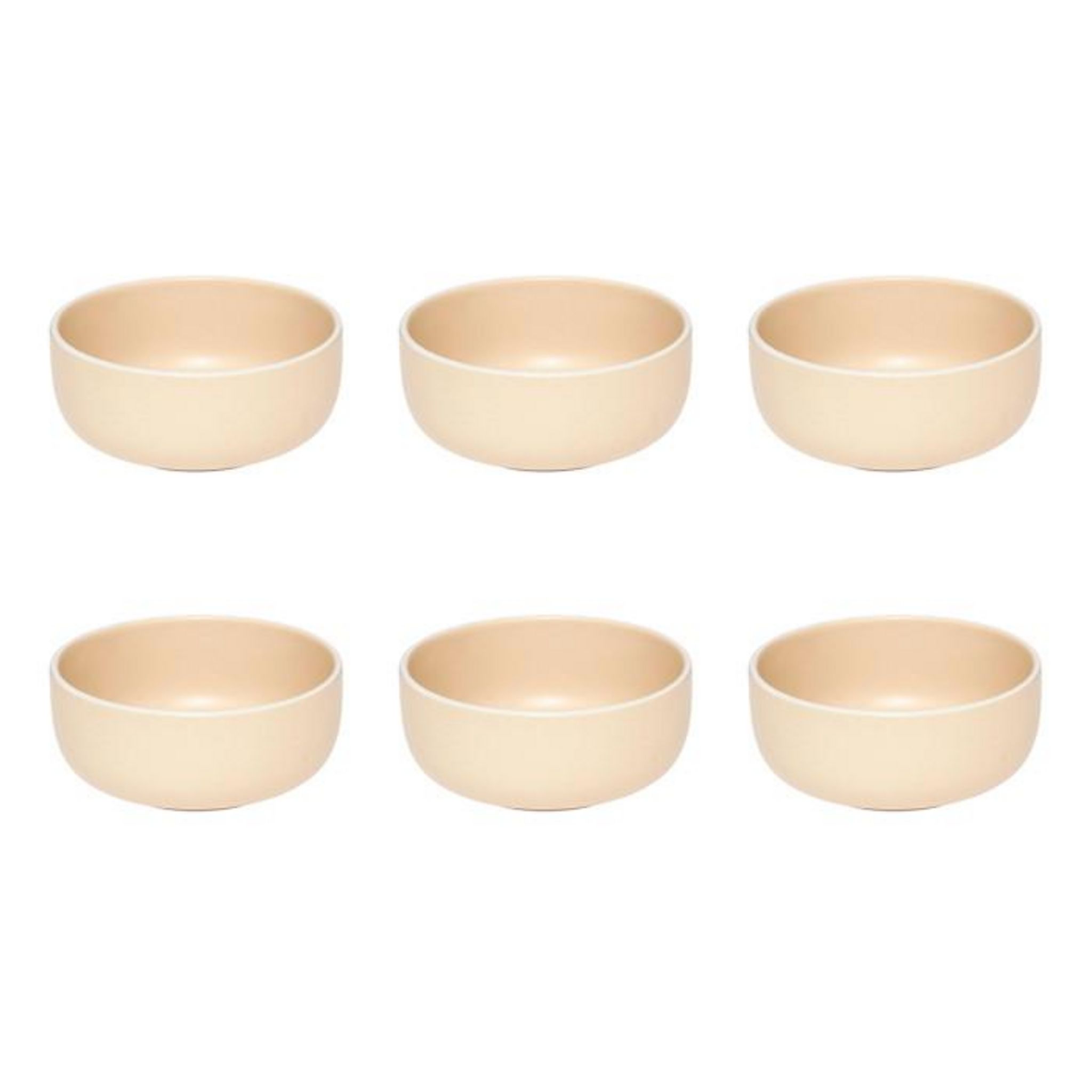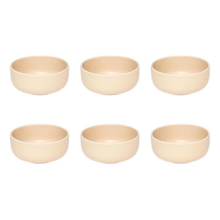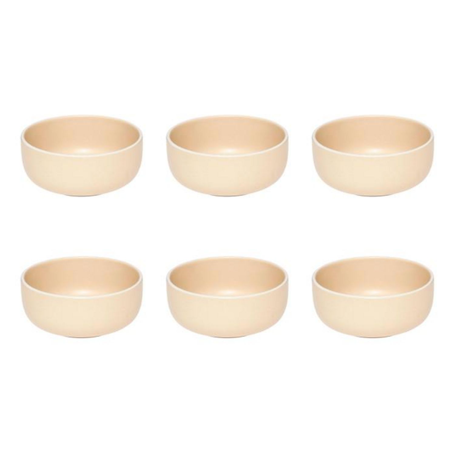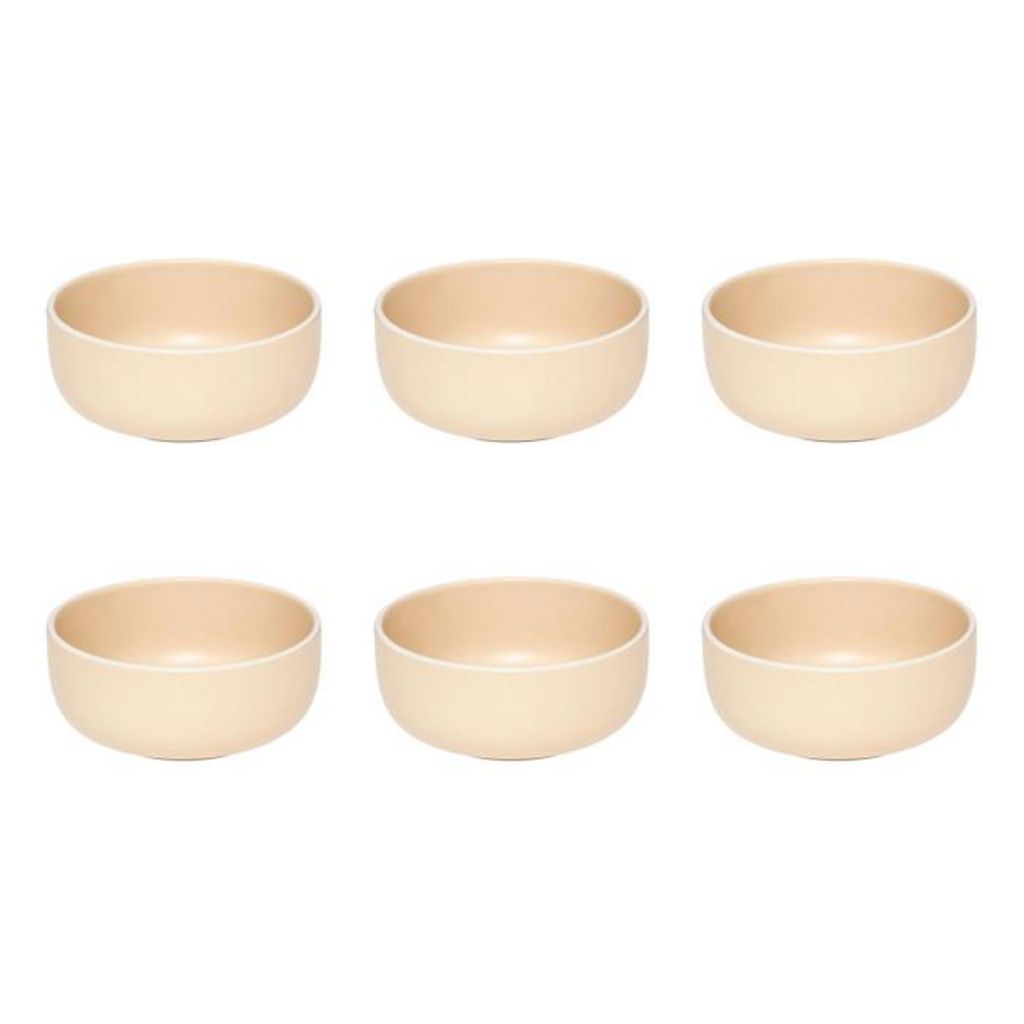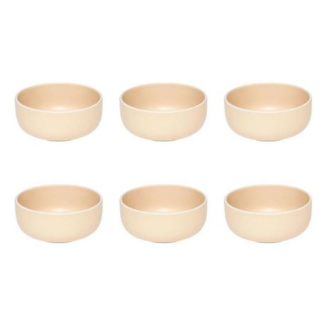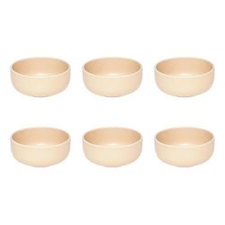 Informations Techniques : Dimensions : D. 14,8 x H. 6,4 cm Matière : Grès Spécificités : Pratique & Épuré Lot de 6 coupelles Design unicolore Forme ronde Poids : 0,53 kg (à l'unité) Couleur : Beige