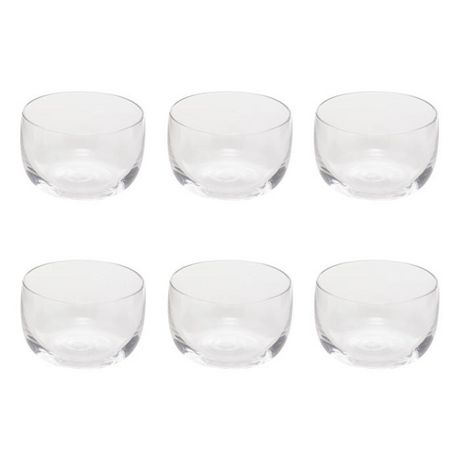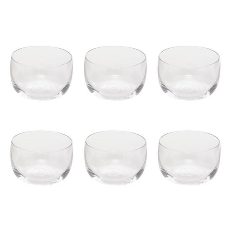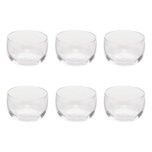 Informations Techniques : Dimensions : D. 10 x H. 6,5 cm Matière : Verre Spécificités : Pratique & Utile Lot de 6 coupelles rondes Compatible lave-vaisselle Poids : 0,17 kg (à l'unité) Couleur : Transparent