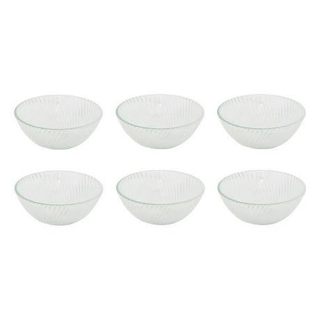 Informations Techniques : Dimensions : D. 13 x H. 5,3 cm Matière : Verre Spécificités : Élégant & Design Lot de 6 coupelles Forme ronde Compatibilités : Lave-vaisselle et micro-ondes Poids : 0,22 kg (à l'unité) Couleur : Transparent