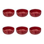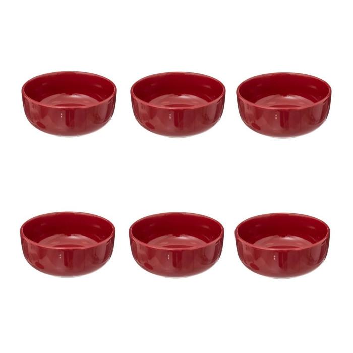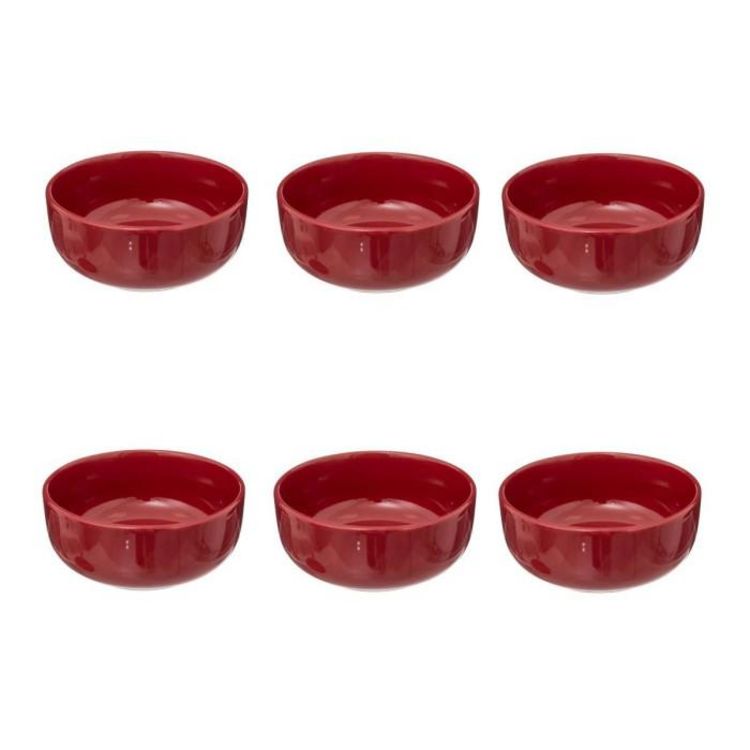 Informations Techniques : Dimensions : D. 15 x H. 6,5 cm Matière : Grès Spécificités : Pratique & Utile Lot de 6 coupelles Forme ronde Poids : 0,45 kg Couleur : Rouge Grenat