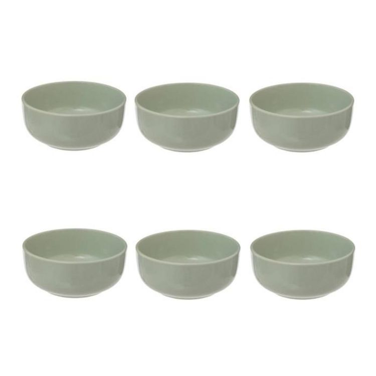 Informations Techniques : Dimensions : D. 15 x H. 6,5 cm Matière : Grès Spécificités : Pratique & Utile Lot de 6 coupelles Forme ronde Poids : 0,45 kg Couleur : Vert Clair
