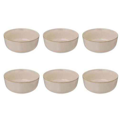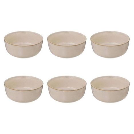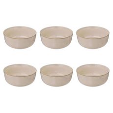 Informations Techniques : Dimensions : D. 15 x H. 6,3 cm Matière : Faïence Spécificités : Tendance & Moderne Lot de 6 coupelles rondes Compatible lave-vaisselle et micro-ondes Poids : 0,47 kg (à l'unité) Couleur : Beige