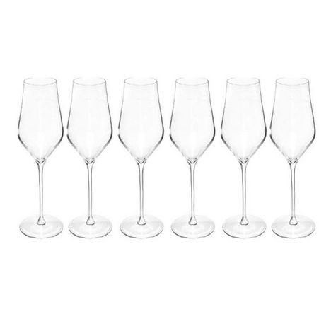 Informations Techniques : Dimensions : D. 7,2 x H. 25 cm Matières : Cristallin Spécificités : Tendance & Moderne Lot de 6 Flûtes à Champagne Passage au Lave-Vaisselle Contenance : 31 cl Poids : 0,147 kg Couleur : Transparent