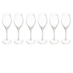 Informations Techniques : Dimensions : D. 8 x H. 23,8 cm Matière : Verre Spécificités : Utile & Pratique Lot de 6 Flûtes à Champagne Forme Ronde Passage au Lave-Vaisselle Contenance : 21 cl Poids : 0,133 kg Couleur : Transparent