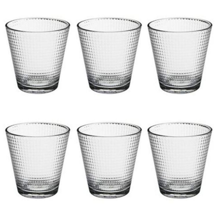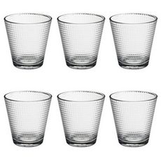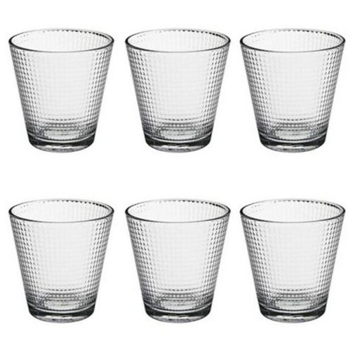 Informations Techniques : Dimensions : D. 8,5 x H. 8,5 cm Matière : Transparent Spécificités : Tendance & Moderne Lot de 6 Gobelets à Eau Forme Ronde Contenance : 25 cl Lave-vaisselle Couleur : Transparent