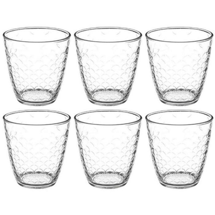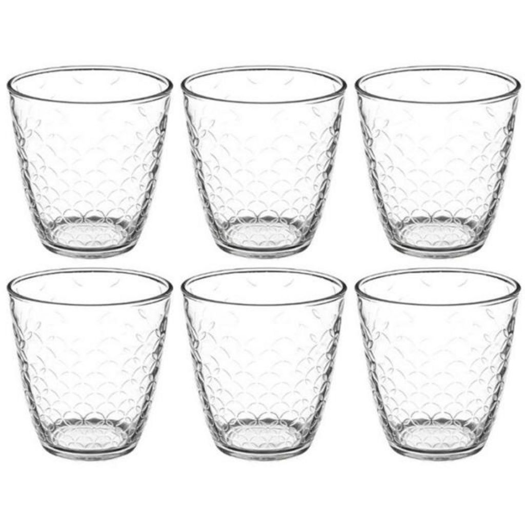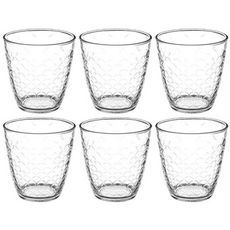 Informations Techniques : Dimension : D. 8,2 x H. 8,5 Matière : Verre Spécificités : Tendance & Moderne Lot de 6 Gobelets Bas Idéal pour servir l'eau Design Texture Forme Ronde Lave Vaisselle : Oui Contenance : 25 cl Fabrication Française Couleur : Transparent