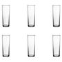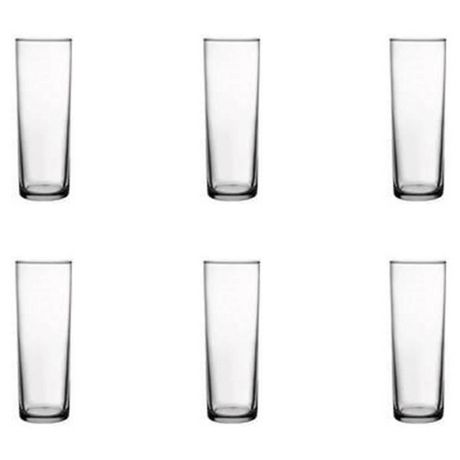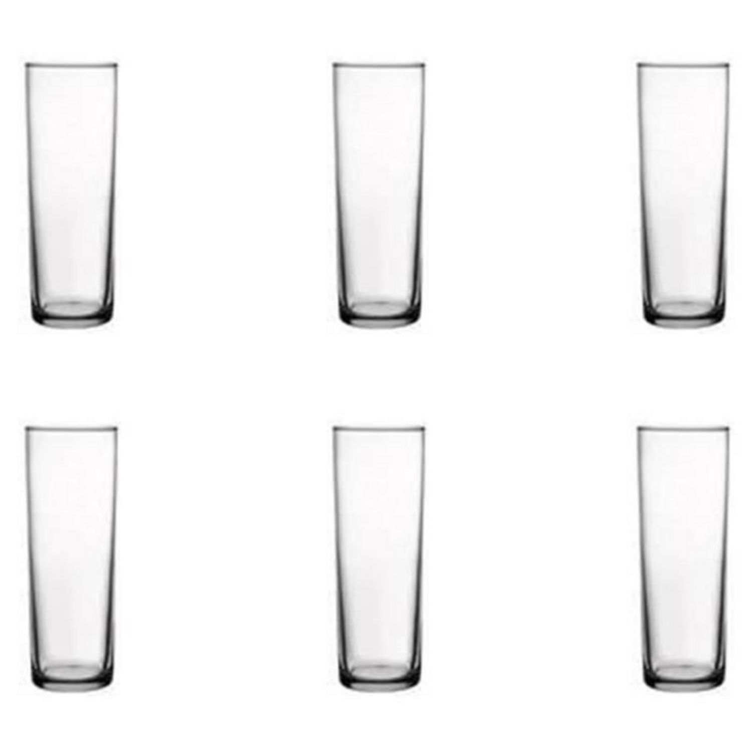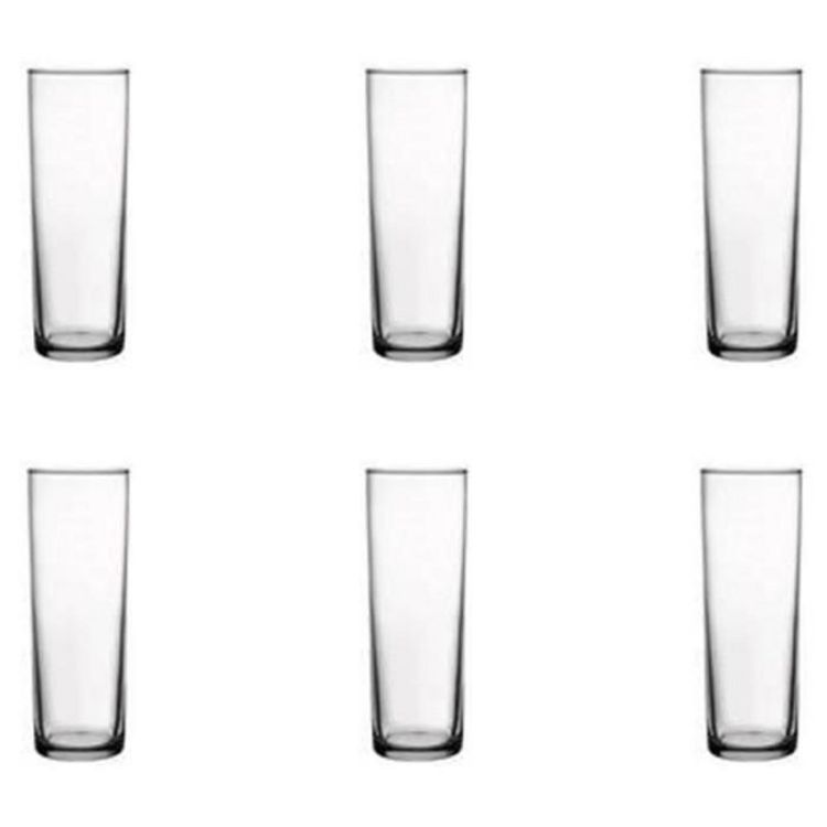 Informations Techniques : Dimensions : D. 6 x H. 16,5 cm Matière : Verre Spécificités : Design & Moderne Lot de 6 Gobelets Hauts à Eau Contenance : 32cl Facile d'entretien & d'utilisation Poids : 0,25 kg (à l'unité) Couleur : Transparent