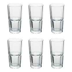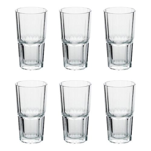 Informations Techniques : Dimensions : D. 15 x H. 8,2 cm Matière : Verre Spécificités : Pratique & Utile Lot de 6 verres à eau Design haut Capacité : 38 cl Poids : 0,44 kg (à l'unité) Couleur : Transparent
