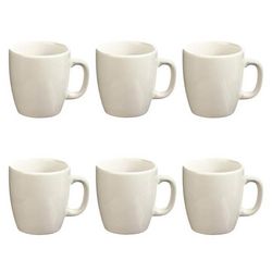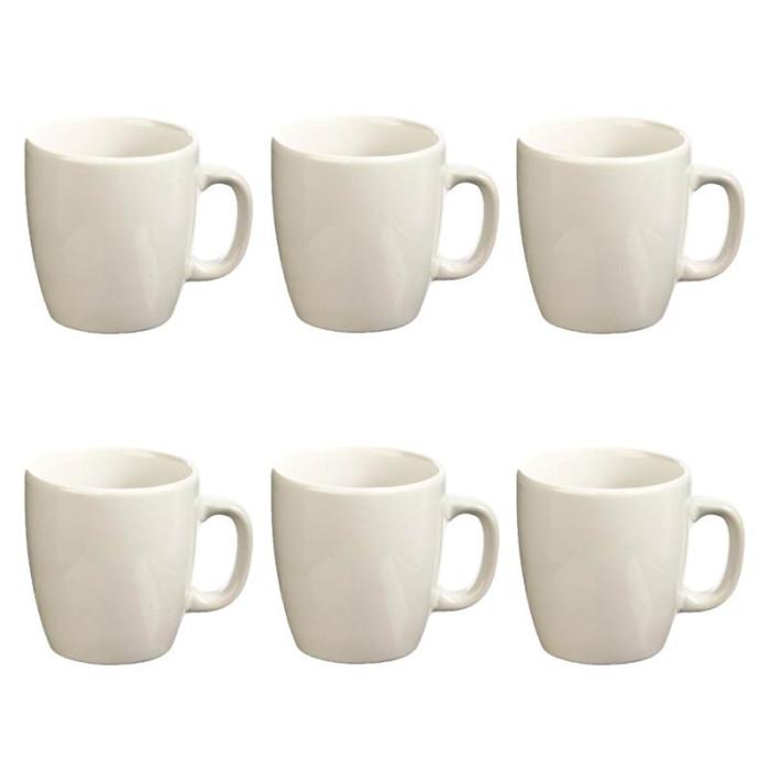 Informations Techniques : Dimensions : L. 7,6 x l. 7,2 x H. 9,4 cm Matière : Faïence Spécificités : Pratique & Utile Lot de 6 Mugs Forme Ronde Avec Anse Passage au Lave-Vaisselle & au Micro-Ondes Contact Alimentaire Contenance : 18 cl Poids : 0,173 kg Couleur : Blanc