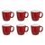 Informations Techniques : Dimensions : L. 7,6 x l. 7,2 x H. 9,4 cm Matière : Faïence Spécificités : Pratique & Utile Lot de 6 Mugs Forme Ronde Avec Anse Passage au Lave-Vaisselle & au Micro-Ondes Contact Alimentaire Contenance : 18 cl Poids : 0,173 kg Couleur : Rouge