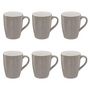 Informations Techniques : Dimensions : L. 10,6 x l. 8,7 x H. 11,8 cm Matière : Faïence Spécificités : Pratique & Utile Lot de 6 Mugs Forme Ronde Avec Anse Passage au Lave-Vaisselle & au Micro-Ondes Contact Alimentaire Contenance : 38 cl Poids : 0,35 kg Couleur : Gris
