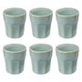Informations Techniques : Dimensions : D. 8,1 x H. 9,5 cm Matière : Grès Spécificités : Élégant & Utile Lot de 6 mugs design Forme ronde Chaque produit est unique, des variations de couleurs peuvent survenir d'un produit à l'autre Contenance : 30 cl Poids : 0,24 kg Couleur : Bleu Clair