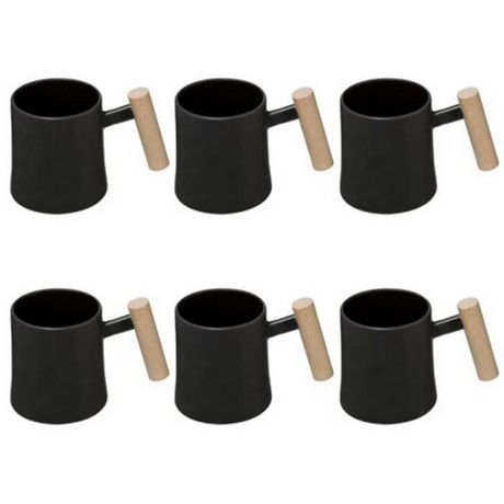 Informations Techniques : Dimensions : D. 8,2 x H. 9,5 cm Matières : Faïence & Hêtre Spécificités : Pratique & Tendance Lot de 6 Mugs design Forme Ronde Avec Anse Poids : 0,35 kg Couleur : Noir
