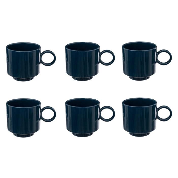 Lot de 6 Mugs en Céramique Anne 38cl Bleu Encre