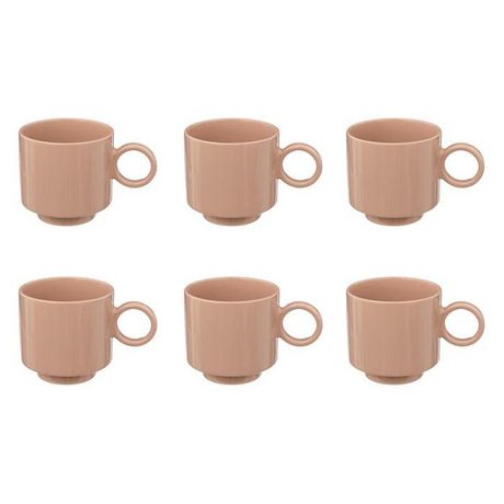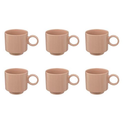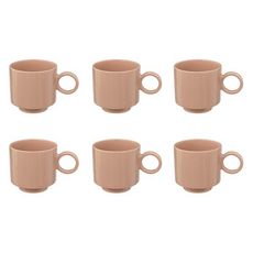Informations Techniques : Dimensions : L. 13,9 x l. 9,2 x H. 9,5 cm Matière : Grès Spécificités : Rétro & Pratique Lot de 6 mugs Forme ronde Contenance : 38 cl Poids : 0,34 kg Couleur : Nude