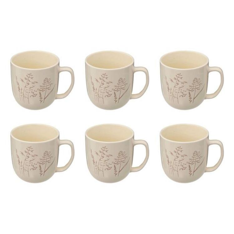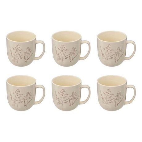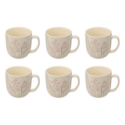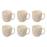 Informations Techniques : Dimensions : L. 8,5 x l. 8,2 x H. 8,2 cm Matière : Grès Spécificités : Pratique & Utile Lot de 6 mugs ronds Motifs végétaux Contenance : 30 cl Poids : 0,28 kg (à l'unité) Couleur : Blanc