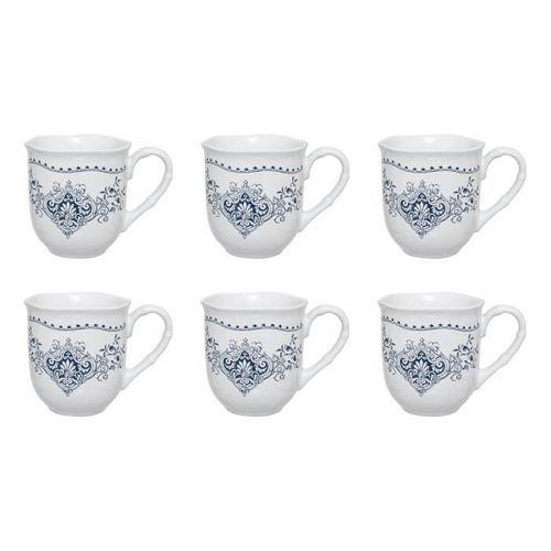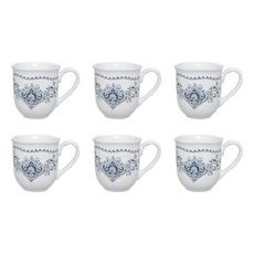 Lot de 6 Mugs en Céramique Little Cottage 32cl Blanc