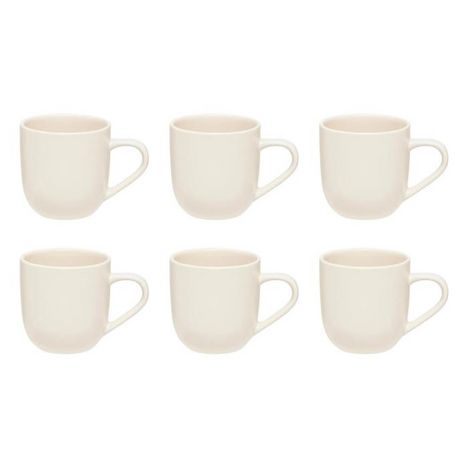 Informations Techniques : Dimensions : L. 11 x l. 7,6 x H. 7,8 cm Matière : Grès Spécificités : Pratique & Utile Lot de 6 mugs Design unicolore Capacité : 24 cl Compatibles : Lave-vaisselle et micro-ondes Poids : 0,18 kg (à l'unité) Couleur : Blanc