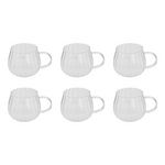 Informations Techniques : Dimensions : L. 11,5 x l. 7,5 x H. 9 cm Matière : Verre Spécificités : Élégant & Pratique Lot de 6 mugs ronds Compatibles : Lave-vaisselle et micro-ondes Capacité : 35 cl Poids : 0,09 kg (à l'unité) Couleur : Transparent
