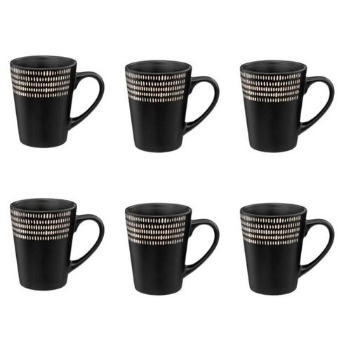 Informations Techniques : Dimensions : L. 12,5 x l. 8,7 x H. 10,6 cm Matière : Faïence Spécificités : Pratique & Utile Lot de 6 Mugs Forme Ronde Passage au Lave-Vaisselle & au Micro-Ondes Contenance : 32 cl Contact Alimentaire Poids : 0,352 kg Couleur : Noir