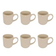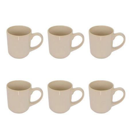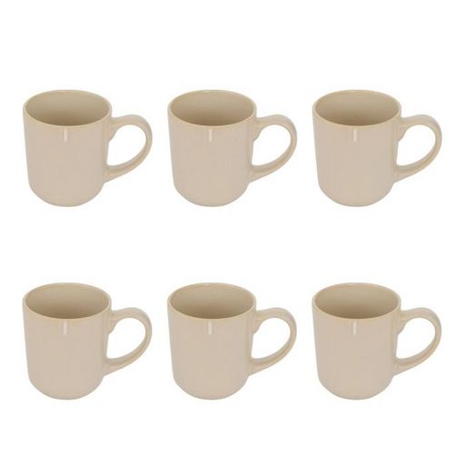 Informations Techniques : Dimensions : L. 13,5 x l. 9,2 x H. 10 cm Diamètre : D. 9,3 cm Matière : Faïence Spécificités : Tendance & Moderne Lot de 6 mugs avec anses Compatible lave-vaisselle et micro-ondes Contenance : 42 cl Poids : 0,37 kg (à l'unité) Couleur : Beige