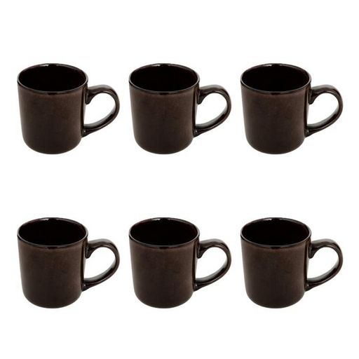 Informations Techniques : Dimensions : L. 13,5 x l. 9,2 x H. 10 cm Diamètre : D. 9,3 cm Matière : Faïence Spécificités : Tendance & Moderne Lot de 6 mugs avec anses Compatible lave-vaisselle et micro-ondes Contenance : 42 cl Poids : 0,37 kg (à l'unité) Couleur : Marron Tonka
