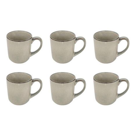 Informations Techniques : Dimensions : L. 13,5 x l. 9,2 x H. 10 cm Diamètre : D. 9,3 cm Matière : Faïence Spécificités : Tendance & Moderne Lot de 6 mugs avec anses Compatible lave-vaisselle et micro-ondes Contenance : 42 cl Poids : 0,37 kg (à l'unité) Couleur : Vert Clair
