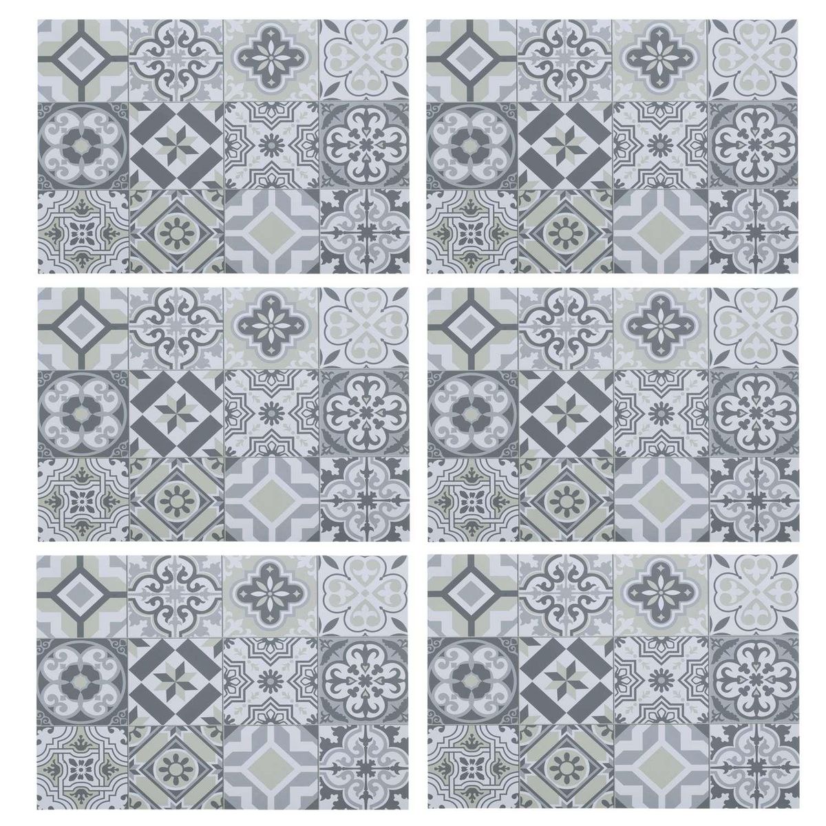 Lot de 6 sets de table rectangulaire Carreaux de ciment - 45 x 30 cm - Gris