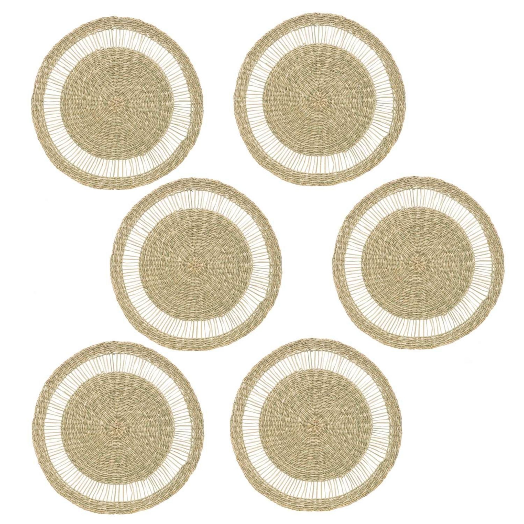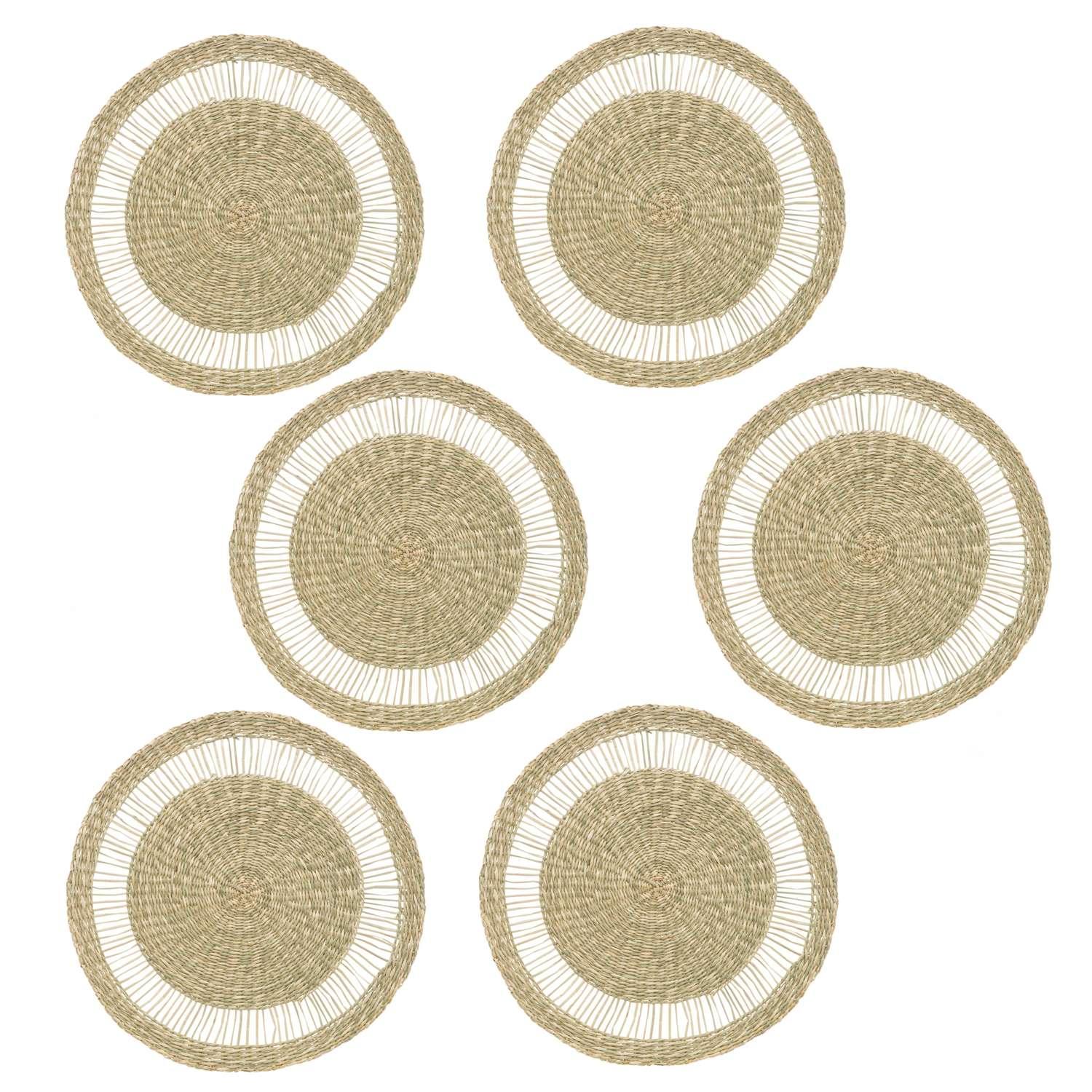 Lot de 6 sets de table rond en roseau tressé - Diam 38 cm - Beige