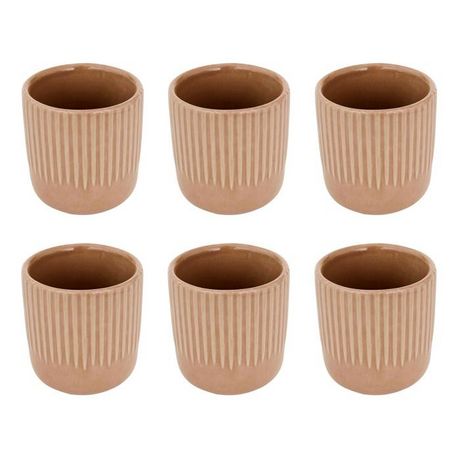 Informations Techniques : Dimensions : D. 6,1 x H. 6,7 cm Matière : Grès Spécificités : Tendance & Élégant Lot de 6 tasses à café Forme ronde Capacités : 11 cl Compatibilités : Lave-vaisselle et micro-ondes Poids : 0,13 kg (à l'unité) Couleur : Moka