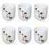 Informations Techniques : Dimensions : L. 5,8 x l. 3,2 x H. 6,5 cm Matière : Porcelaine Spécificités : Déco & Tendance Lot de 6 Tasses à Café Forme Ronde Contact Alimentaire Contenance : 12 cl Poids : 0,09 kg Couleur : Blanc