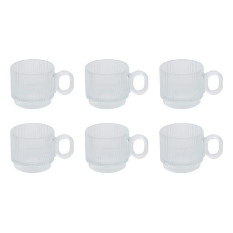 Informations Techniques : Dimensions : L. 8,6 x l. 5,3 x H. 6,1 cm Matière : Verre Spécificités : Élégant & Utile Lot de 6 tasses à café Design unicolore Capacités : 10 cl Poids : 0,13 kg (à l'unité) Couleur : Transparent