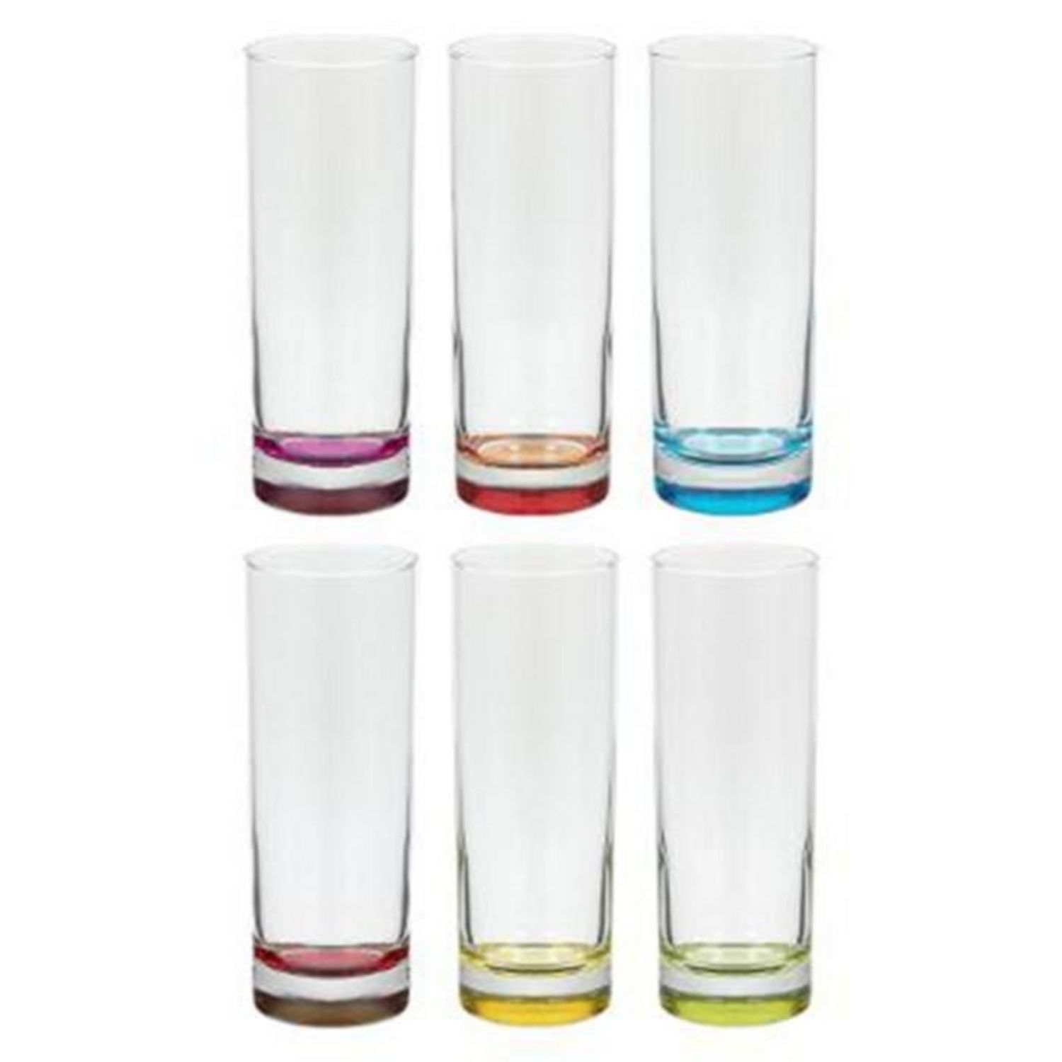 Contient 1 verre fuchsia, 1 verre rouge, 1 verre turquoise, 1 verre vert, 1 verre jaune & 1 verre orange