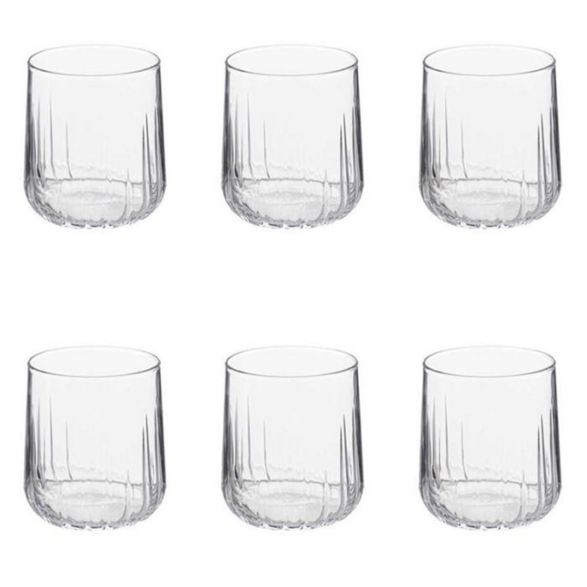 Informations Techniques : Dimensions : D. 7,2 x H. 8,6 cm Matière : Verre Spécificités : Pratique & Utile Lot de 6 Verres à Eau Forme Ronde Passage au Lave-Vaisselle & au Micro-Ondes Contenance : 31 cl Poids : 0,205 kg Couleur : Transparent