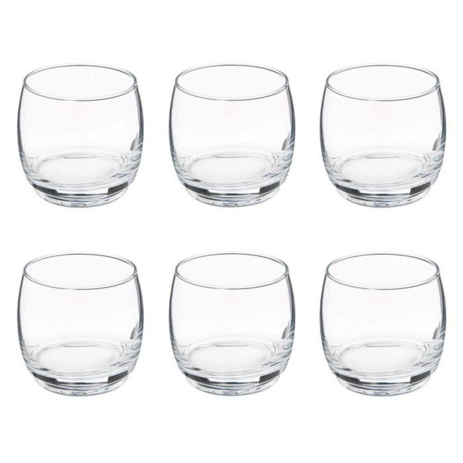 Informations Techniques : Dimensions : L. 8 x l. 7,5 x H. 8 cm Matière : Verre Spécificités : Pratique & Utile Lot de 6 verres à eau Forme ronde Contenance : 32 cl Poids : 0,21 kg Couleur : Transparent