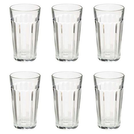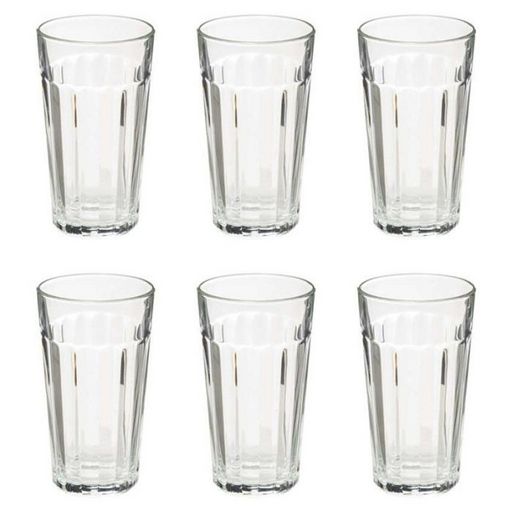 Informations Techniques : Dimensions : D. 7 x H. 16,5 cm Matière : Verre Spécificités : Pratique & Utile Lot de 6 Verres à Eau Forme Ronde Passage au Lave-Vaisselle & au Micro-Ondes Contenance : 35 cl Couleur : Transparent