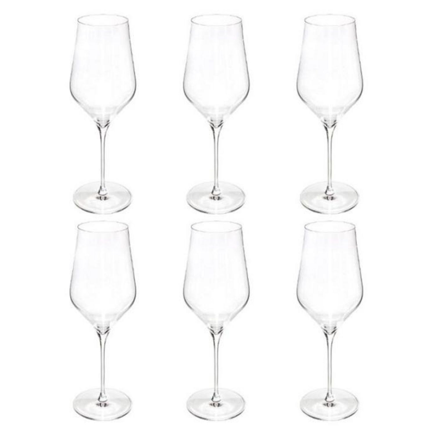 Informations Techniques : Dimensions : D. 8,5 x H. 26 cm Matière : Cristallin Spécificités : Tendance & Déco Lot de 6 Verres à Vin Passage au Lave-Vaisselle Contenance : 52 cl Poids : 0,425 kg Couleur : Transparent
