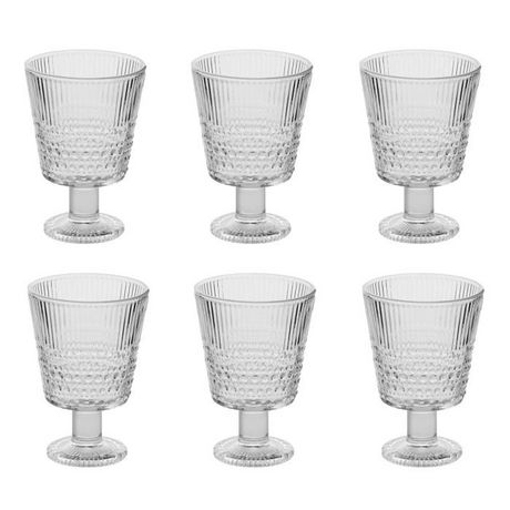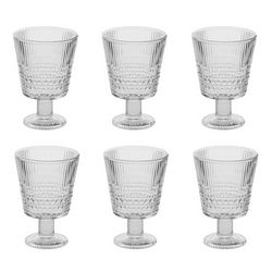 Informations Techniques : Dimensions : D. 8,7 x H. 12,8 cm Matière : Verre Spécificités : Élégant & Utile Lot de 6 verres à vin Motifs en relief Capacité : 23 cl Poids : 0,26 kg (à l'unité) Couleur : Transparent