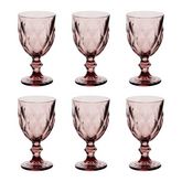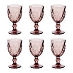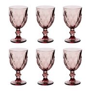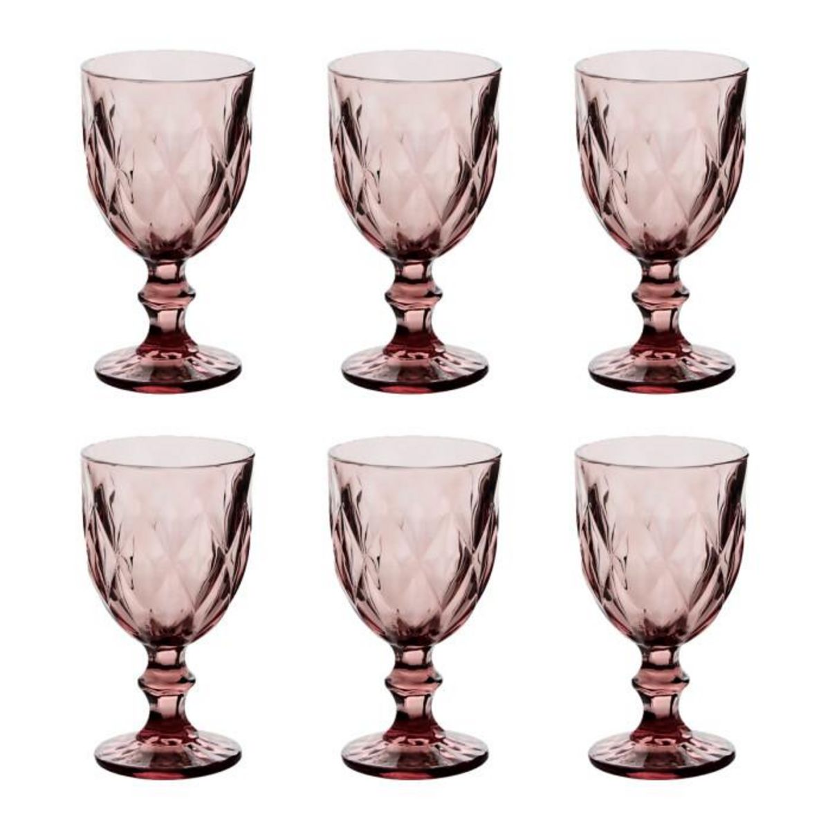 Informations Techniques : Dimensions : D. 8 x H. 15,2 cm Matière : Verre Spécificités : Élégant & Utile Lot de 6 verres à vin Motifs losanges en relief Capacité : 23 cl Poids : 0,27 kg (à l'unité) Couleur : Rose