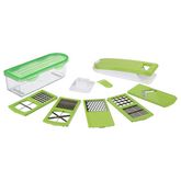 Cuisinez rapidement de bons petits plats grâce à cette mandoline et ses 12 pièces incluses comprenant 8 pièces de découpe. Ainsi vous pourrez découper selon la lame désirée tous vos aliments et les conserver directement dans un bac récupérateur à couvercle hermétique.