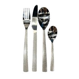 Informations Techniques : Dimensions : L. 1,8 x l. 0,2 x H. 21,7 cm Matière : Acier Inoxydable Spécificités : Robuste & Élégante Ménagère 24 pièces Manches design Contient : 6 x fourchettes 6 x couteaux 6 x cuillères à soupe 6 x cuillères à café Compatibilité : Lave-vaisselle Poids : 0,96 kg Couleur