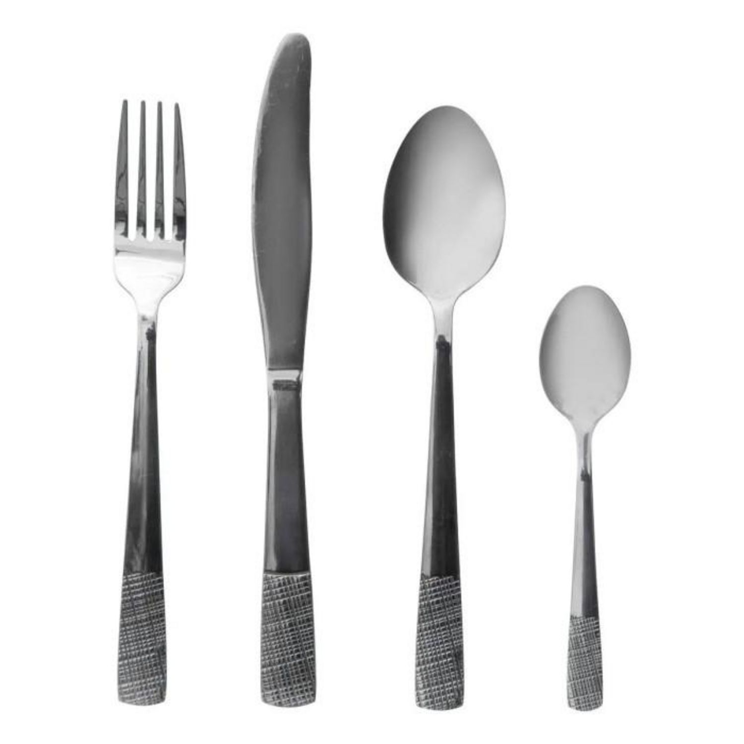 Informations Techniques : Matière : Acier inoxydable Spécificités : Tendance & Pratique Ménagère 24 Pièces Contient : 6 Fourchettes 6 Couteaux 6 Cuillères à Café 6 Cuillères à Soupe Poids : 1,349 kg Couleur : Gris