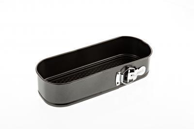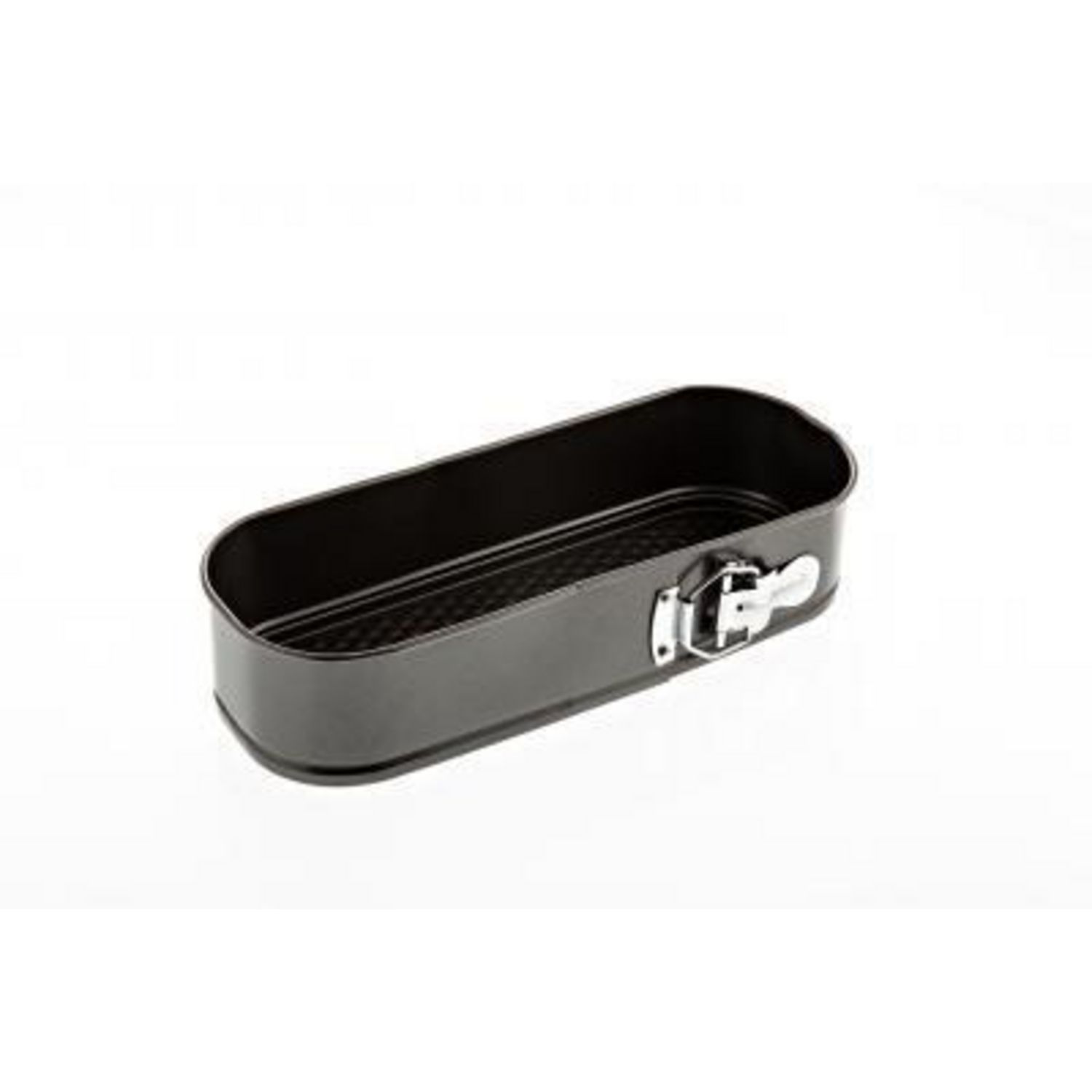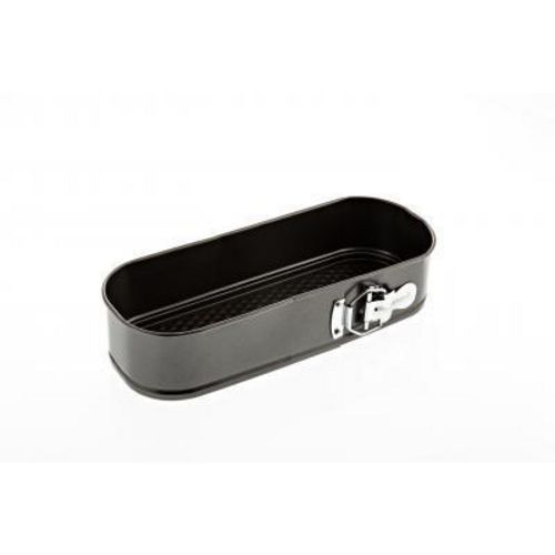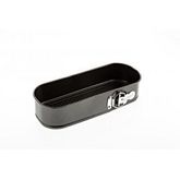 Réalisez de beaux gâteaux pour ravir les papilles de vos invités avec ce moule à cake rectangulaire noir en acier carbone de longueur 31 cm, de largeur 12 cm et de hauteur 6.80 cm. La charnière vous permettra de démouler facilement votre gâteaux. Bénéficiez d'un entretien facile avec la compatibilité lave vaisselle.