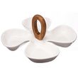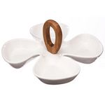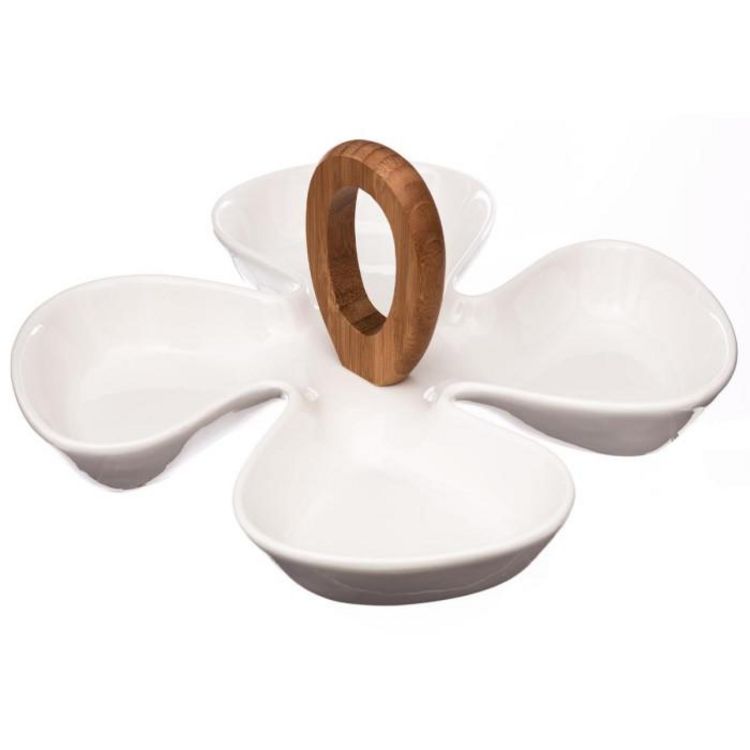 Informations Techniques : Dimensions : L. 28 x l. 28 x H. 12 cm Matières : Bois (Bambou) & Porcelaine Spécificités : Poignée centrale 4 compartiments Lavage à la Main Incompatible avec Four & Micro-Ondes Poids : 0,920 kg Couleur : Blanc