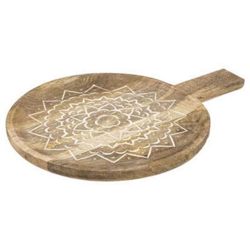 Informations Techniques : Dimensions : L. 38 x l. 28 x H. 2 cm Matière : Bois (Manguier) Spécificités : Pratique & Utile Plat de Présentation Forme Ronde Design Mandala Contact Alimentaire Poids : 0,668 kg Couleur : Naturel