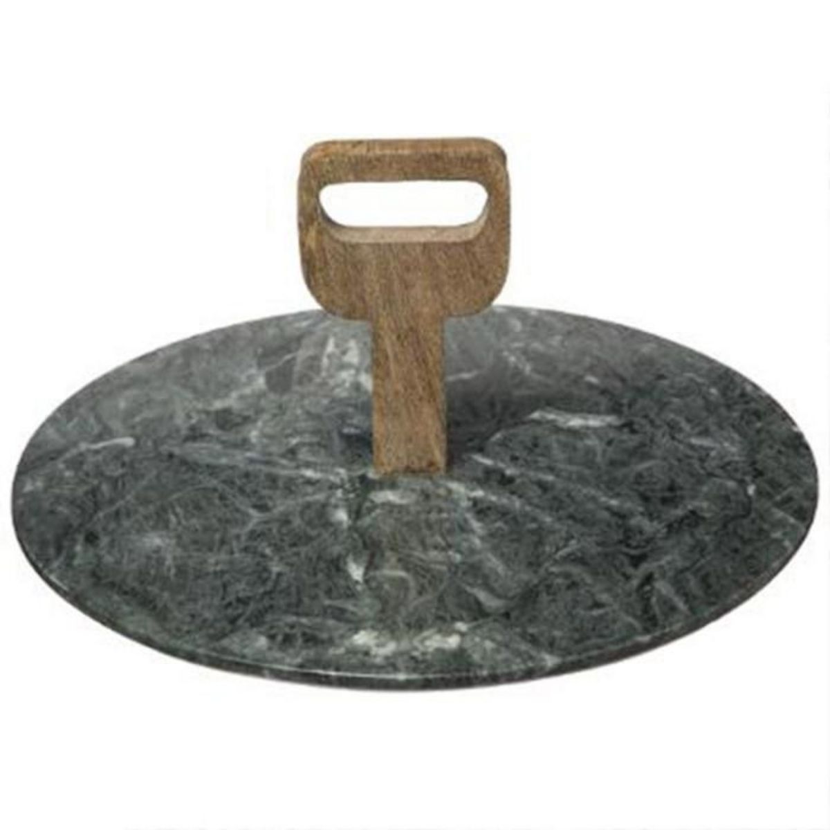 Informations Techniques : Dimensions : D. 30 x H. 14 cm Matières : Marbre & Bois Spécificités : Pratique & Utile Plat de Présentation Forme Ronde Avec Poignée Couleur : Vert