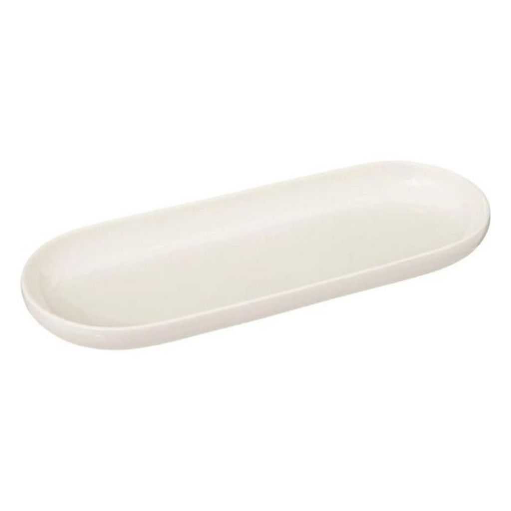 Informations Techniques : Dimensions : L. 23 x l. 9 x H. 2,5 cm Matière : Porcelaine Spécificités : Pratique & Utile Plat de présentation Forme ovale Poids : 0,23 kg Couleur : Blanc