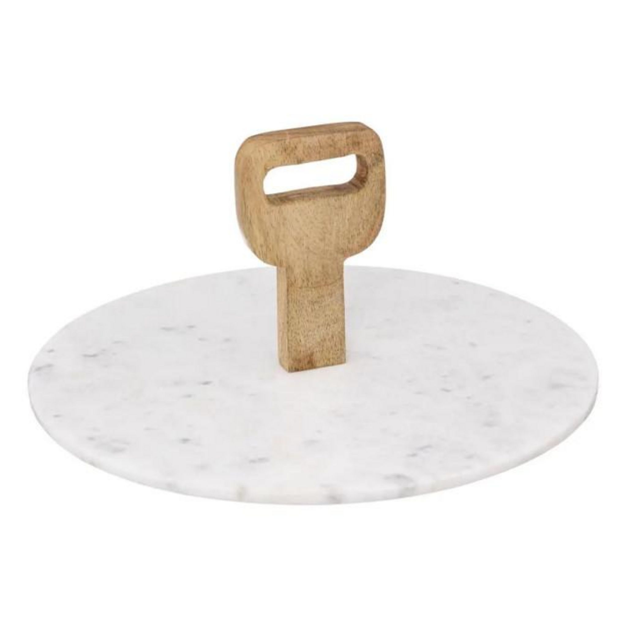 Informations Techniques : Dimensions : D. 30 x H. 14 cm Matières : Marbre & Bois (Manguier) Spécificités : Pratique & Utile Plat de Présentation Forme Ronde Avec Poignée Contact Alimentaire A monter soi-même Poids : 2,973 kg Couleur : Blanc